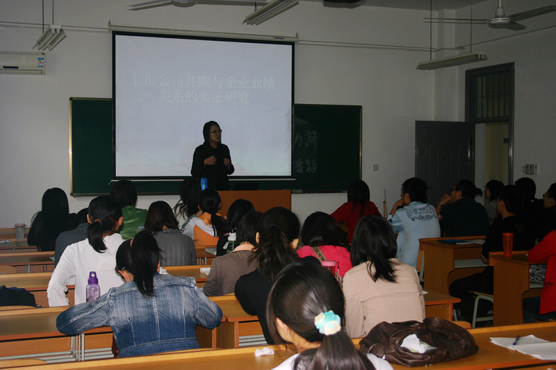 潘颖博士将自己的研究成果向同学们做了介绍,与会同学们反映,通过听这次报告,开拓了学术视野,明确了规范论文的写作范式,对以后做研究、写文章有一定的启发,同时对上市公司并购与企业业绩关系也有了一定的了解。