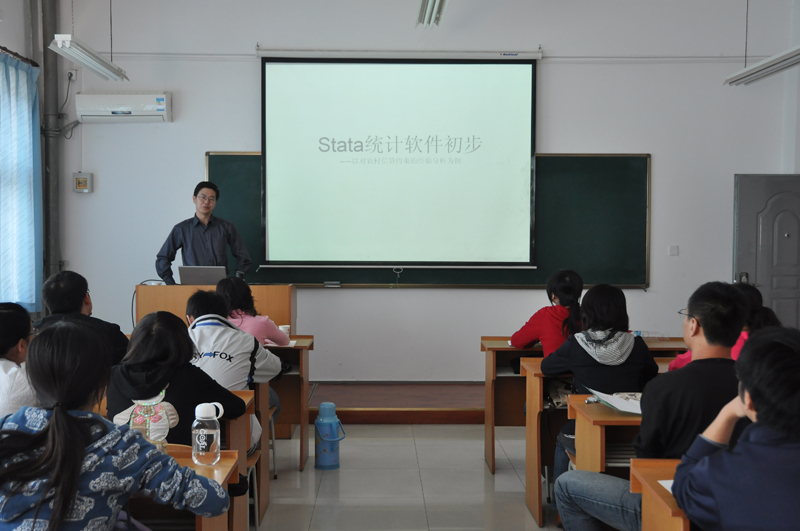 10月23日下午,永利官网马小勇副教授应邀在8213教室作了题为《stata统计软件初步应用——以对农村信贷约束的经验分析为例》的专题报告。报告会由院团委马金保老师主持,2009级硕士研究生参加了报告会。