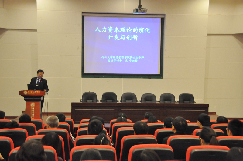 10月27日晚,永利官网博士生导师惠宁教授应邀在金海报告厅作了题为《人力资本理论的演化、开发与创新》的专题报告,报告会由院团委马金保老师主持,学院200余名研究生参加了报告会。