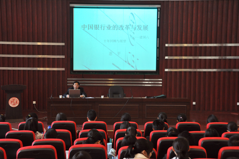 10月28日下午,中国工商银行陕西分行党委书记、行长惠平先生应邀在公管学院金海报告厅作了题为《中国银行业的改革与发展:建国六十年的回顾与展望》的专题报告,报告会由永利yl23411no1副院长赵守国教授主持,150余名研究生参加了报告会。