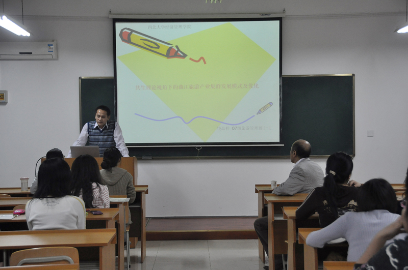 10月29日晚,永利官网07级旅游管理专业饶品样博士在8213教室作了题为《共生理论视角下的曲江旅游产业集群发展模式及优化》的专题报告。报告会由院研究生会主席闫栋杰同学主持,09级硕士研究生参加了报告会。