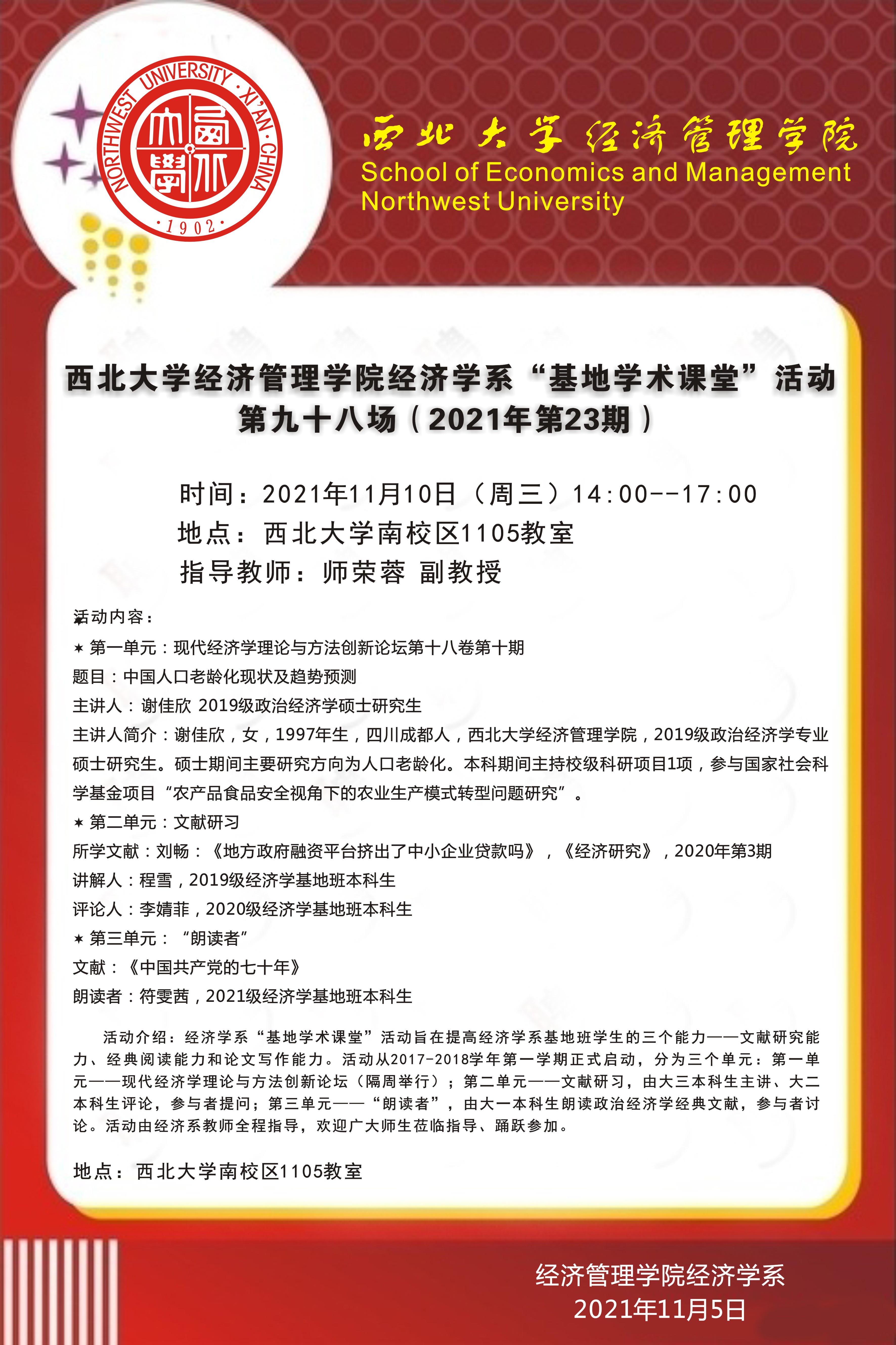 上一条:永利yl23411no1经济学系“基地学术课堂”活动第九十九场(2021年第24期)