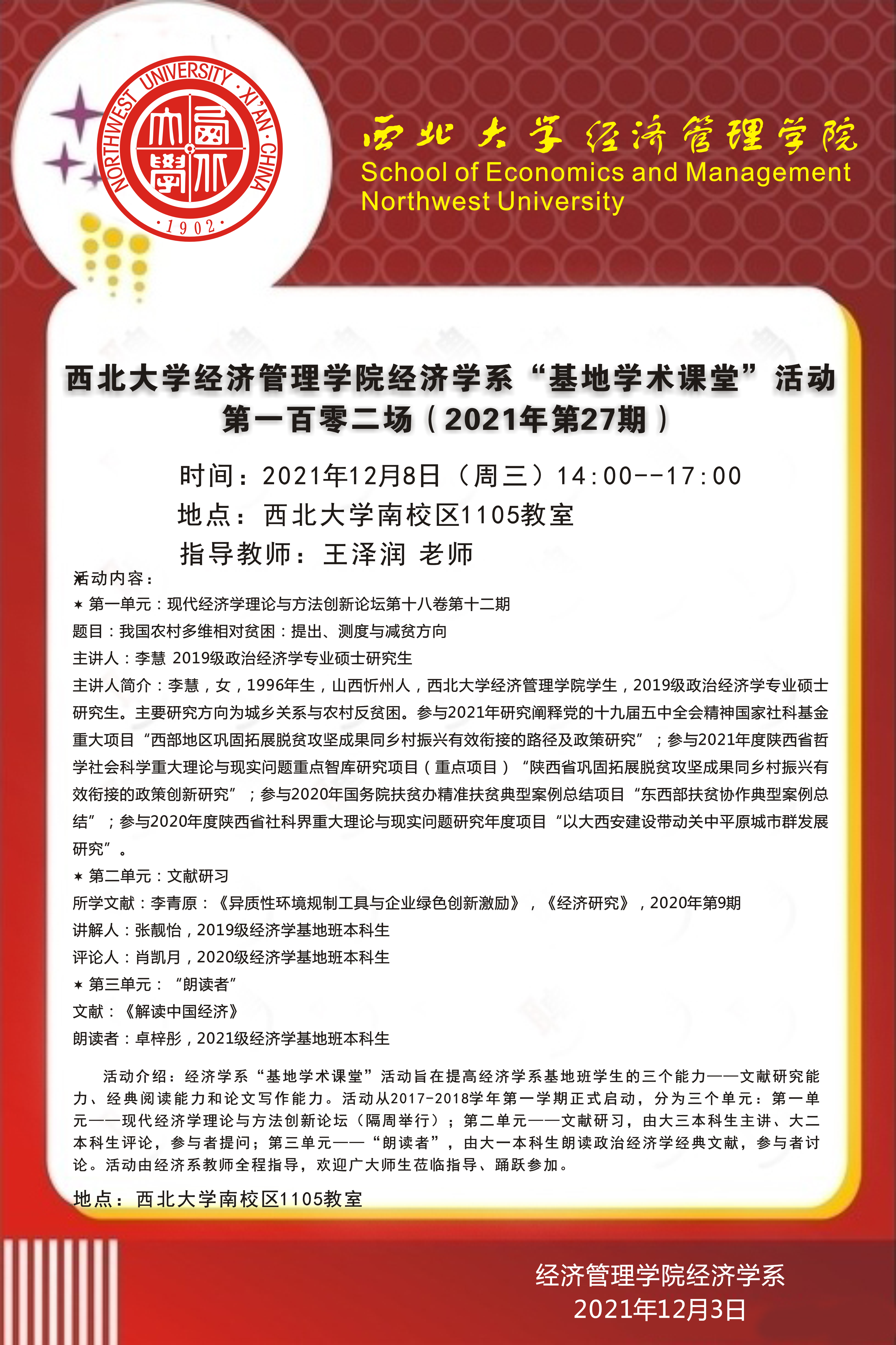 下一条:永利yl23411no1经济学系“基地学术课堂”活动第一百零一场(2021年第26期)