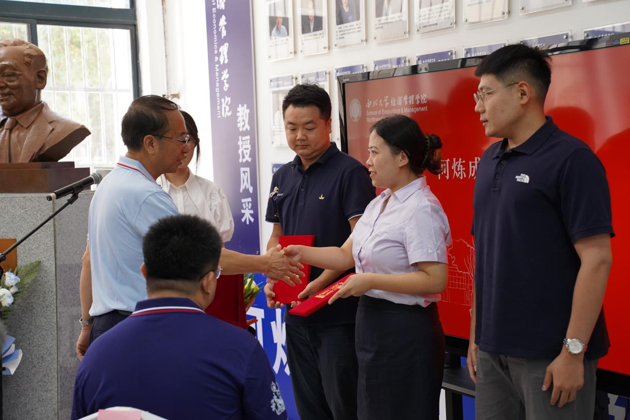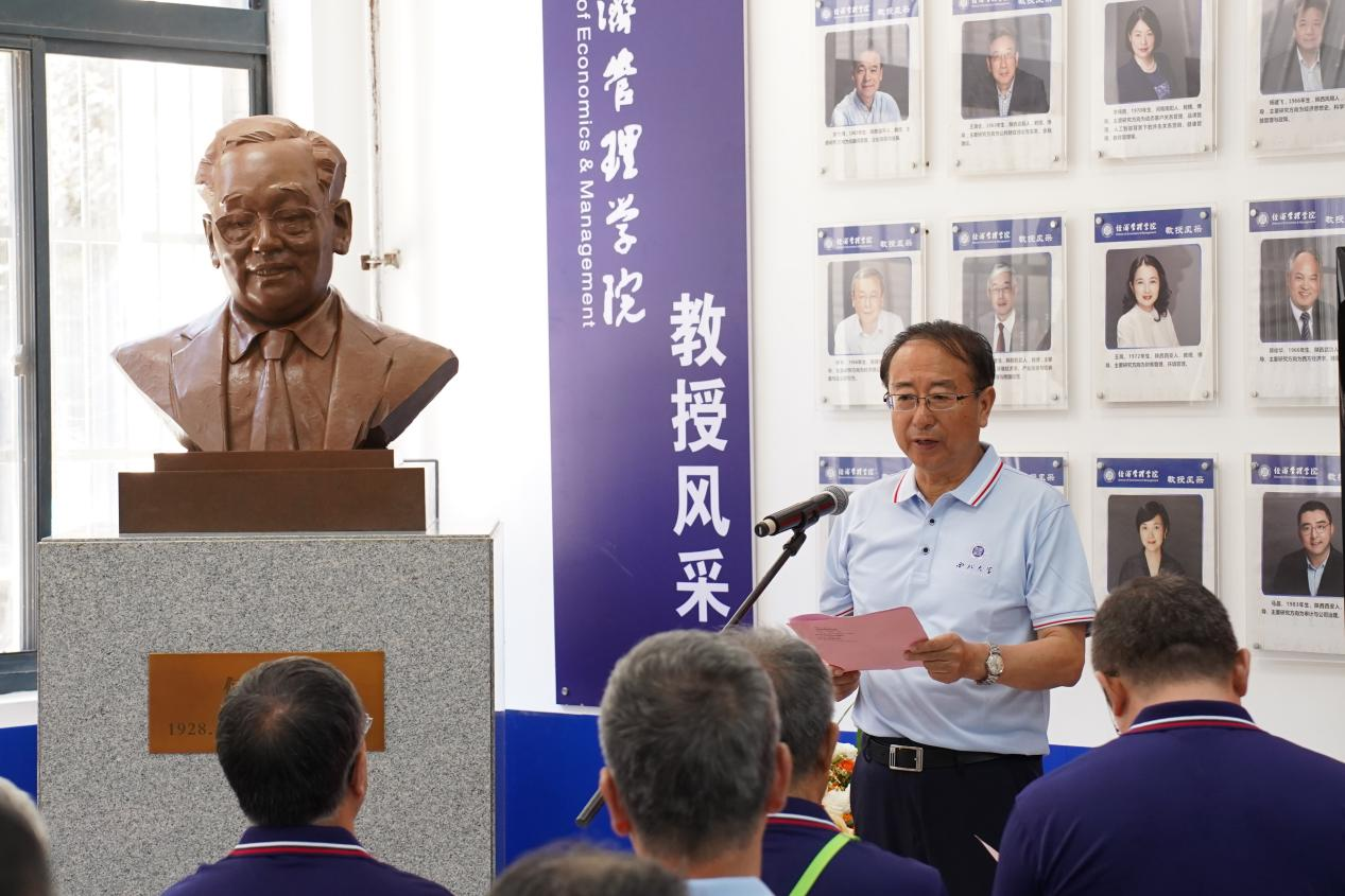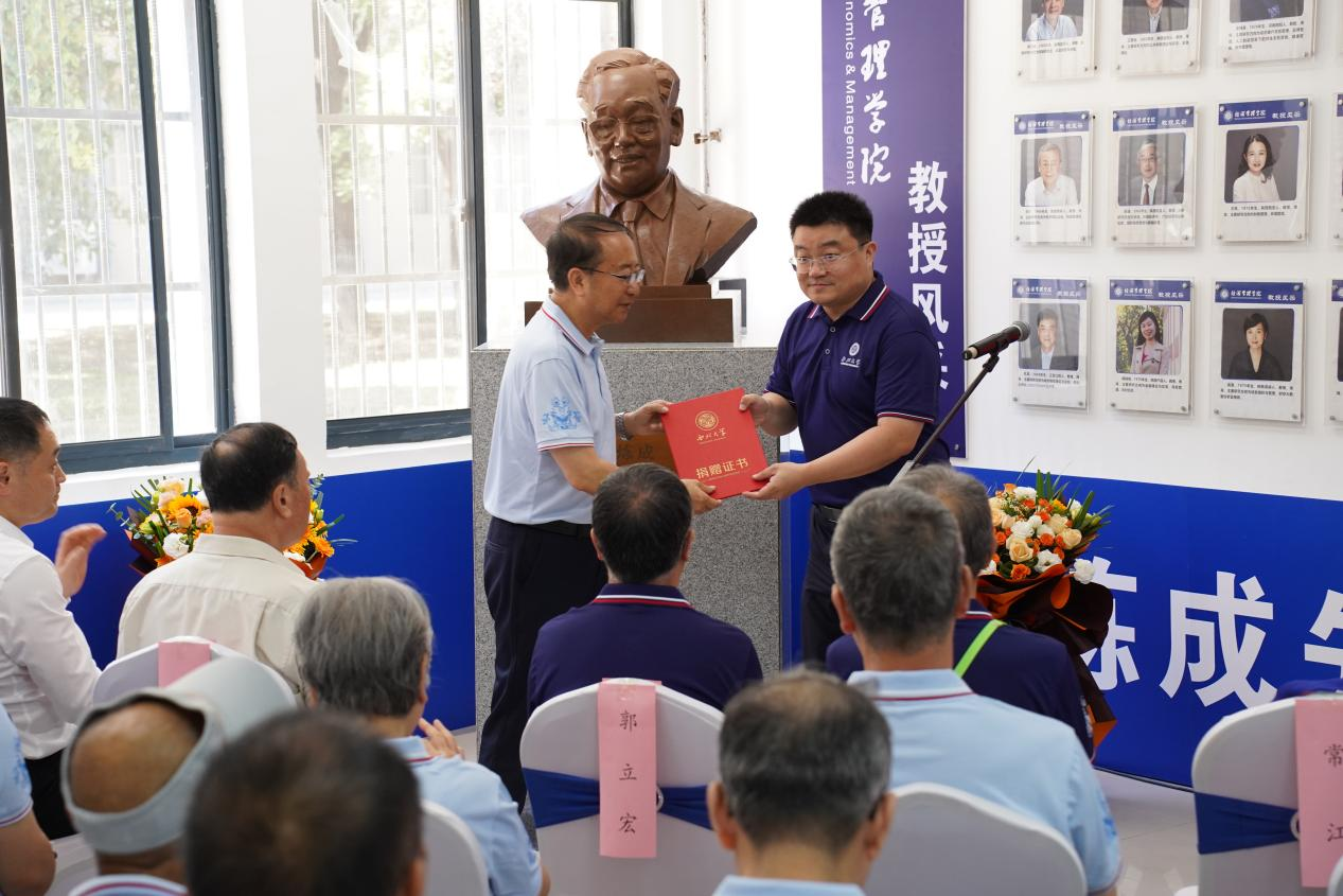 在活动中,由77级校友、北京大学国家发展研究院联合创始人张维迎教授,永利yl23411no1郭立宏校长,常江副校长和吴振磊副校长共同为何炼成先生塑像揭幕。吴振磊副校长为何炼成先生铜像捐赠集体——77级经济系颁发了捐赠证书。永利yl23411no1院长马莉莉教授在致辞中指出,何先生治经世济民之学,提出了诸多具有创新性和前瞻性的理论观点;守教书育人之道,扎根西北七十多年,培养的学生共获得8次孙冶方经济科学奖;孜孜以求、笔耕舌耘,形成了独特的问题意识和方法论。她表示,全院师生将在学校的坚强领导下,不负先生之志,为把学院建设成为国内一流、国际知名的经管学院而不懈奋斗。