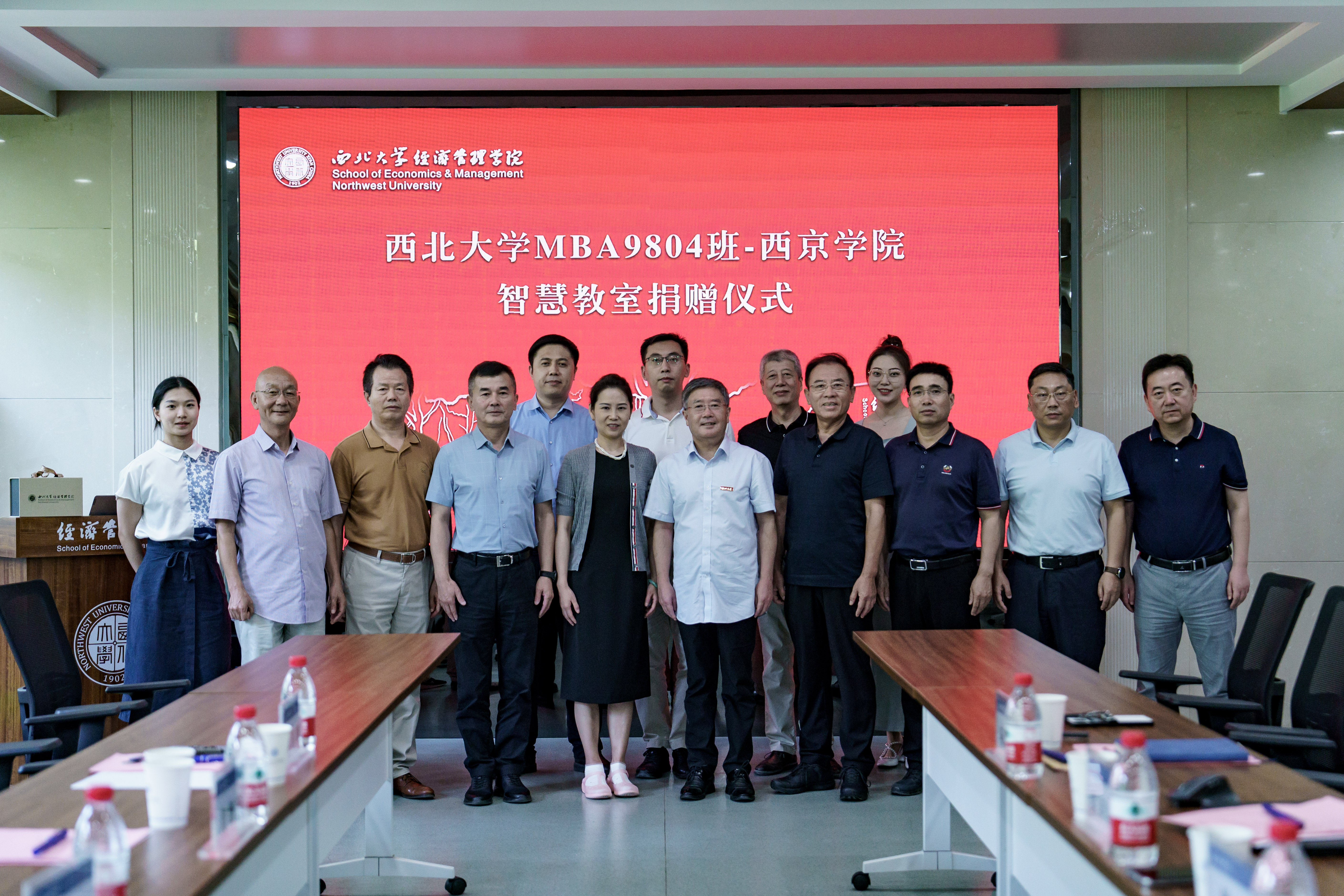 7月16日下午,MBA9804班-西京学院智慧教室捐赠仪式在长安校区经管学院318会议室举行。永利yl23411no1校长郭立宏,MBA9804班校友西京学院校长任芳,西安市机构编制委员会办公室原主任王炳南,西京学院常务副校长苏明,陕西西科企业投资控股集团有限公司董事长范西亚,陕西瑞凡实业有限公司董事长刘继安,渭南市政府副秘书长师东明,西安鹰翔测绘科技有限公司独立董事杜彤,永利yl23411no1国内合作与校友工作处处长崔延力,永利yl23411no1党委书记杜勇、副院长张华岭,校友办公室主任吴丰华、秘书马瑛敏,MBA/EDP中心主任助理谷芊叶参加活动。捐赠仪式由学院党委书记杜勇主持。