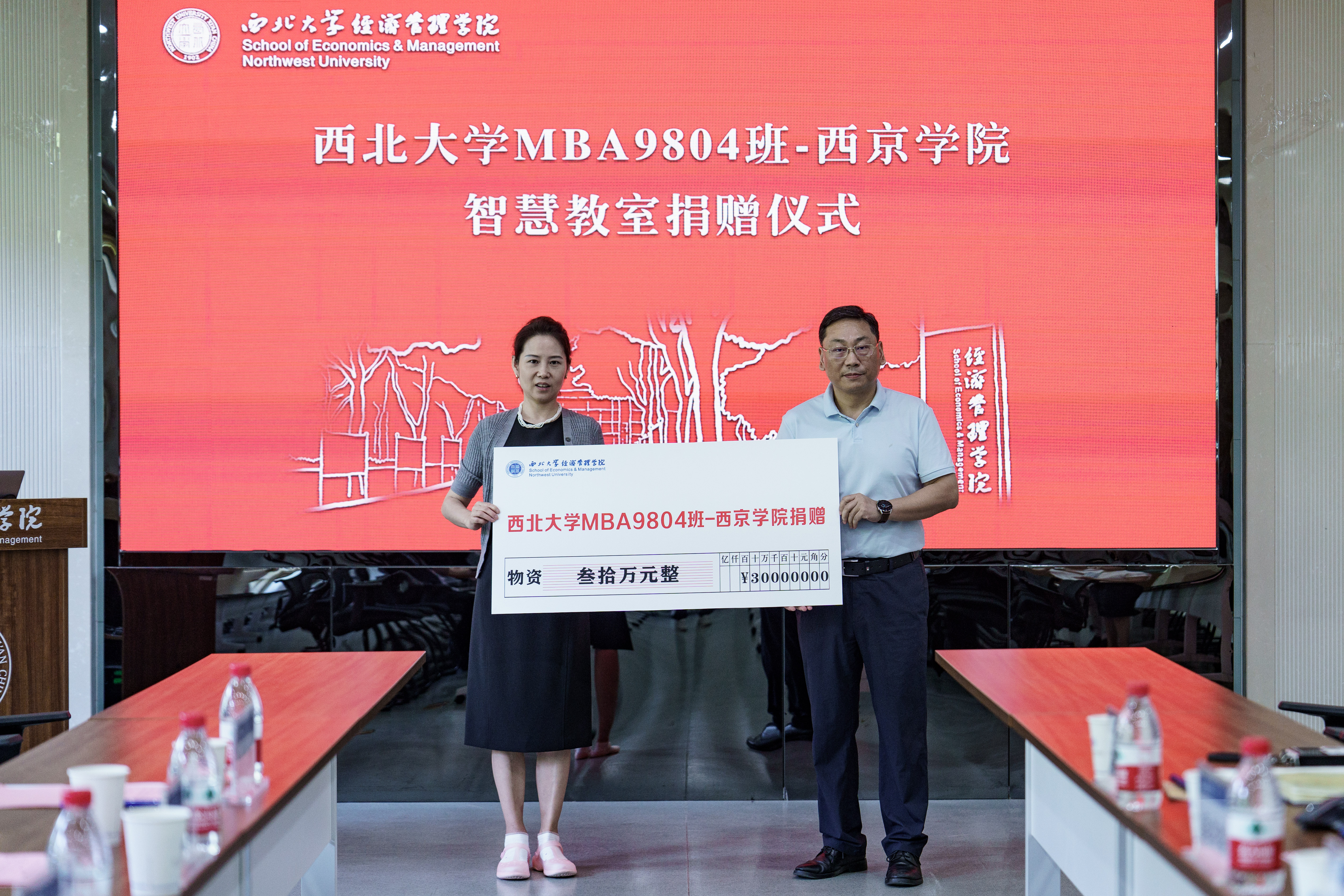 捐赠仪式上,任芳代表MBA9804班和西京学院向永利官网捐赠30万元智慧教室建设专项资金,崔延力代表学校向捐赠集体颁发了捐赠证书。
